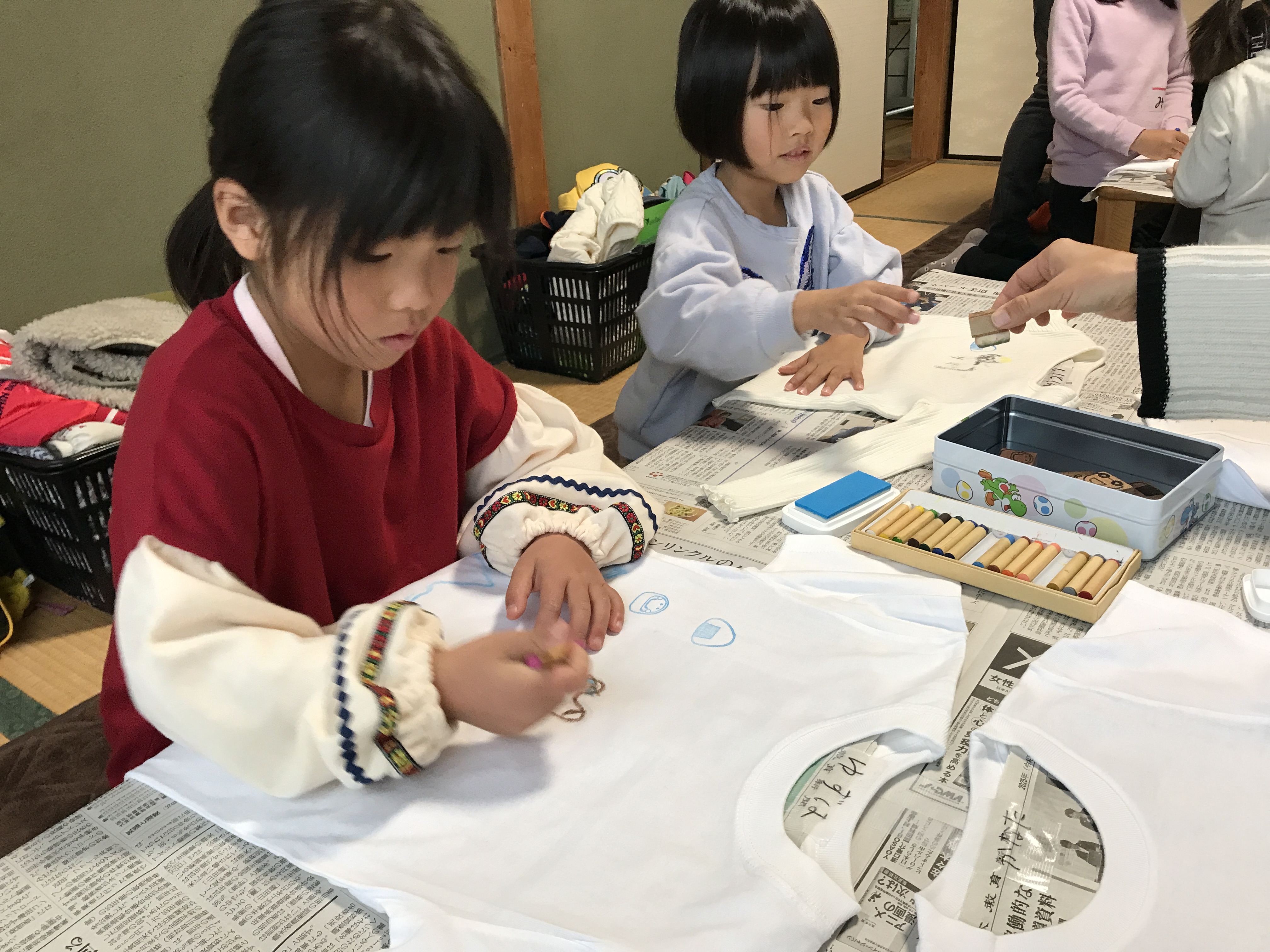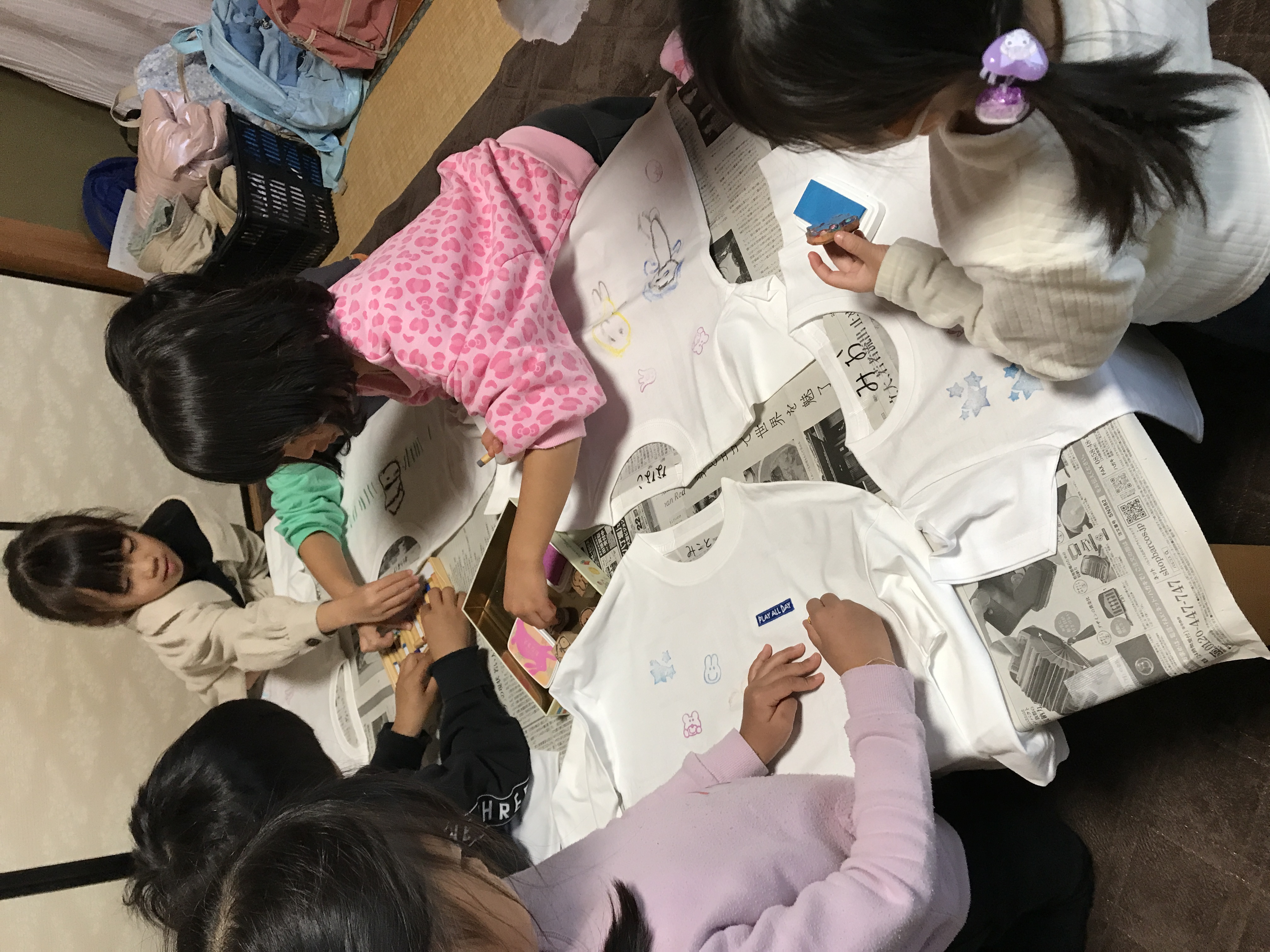 まずはみんなで1日何をするのかをお話してから、恒例のTシャツ作りを行いました。