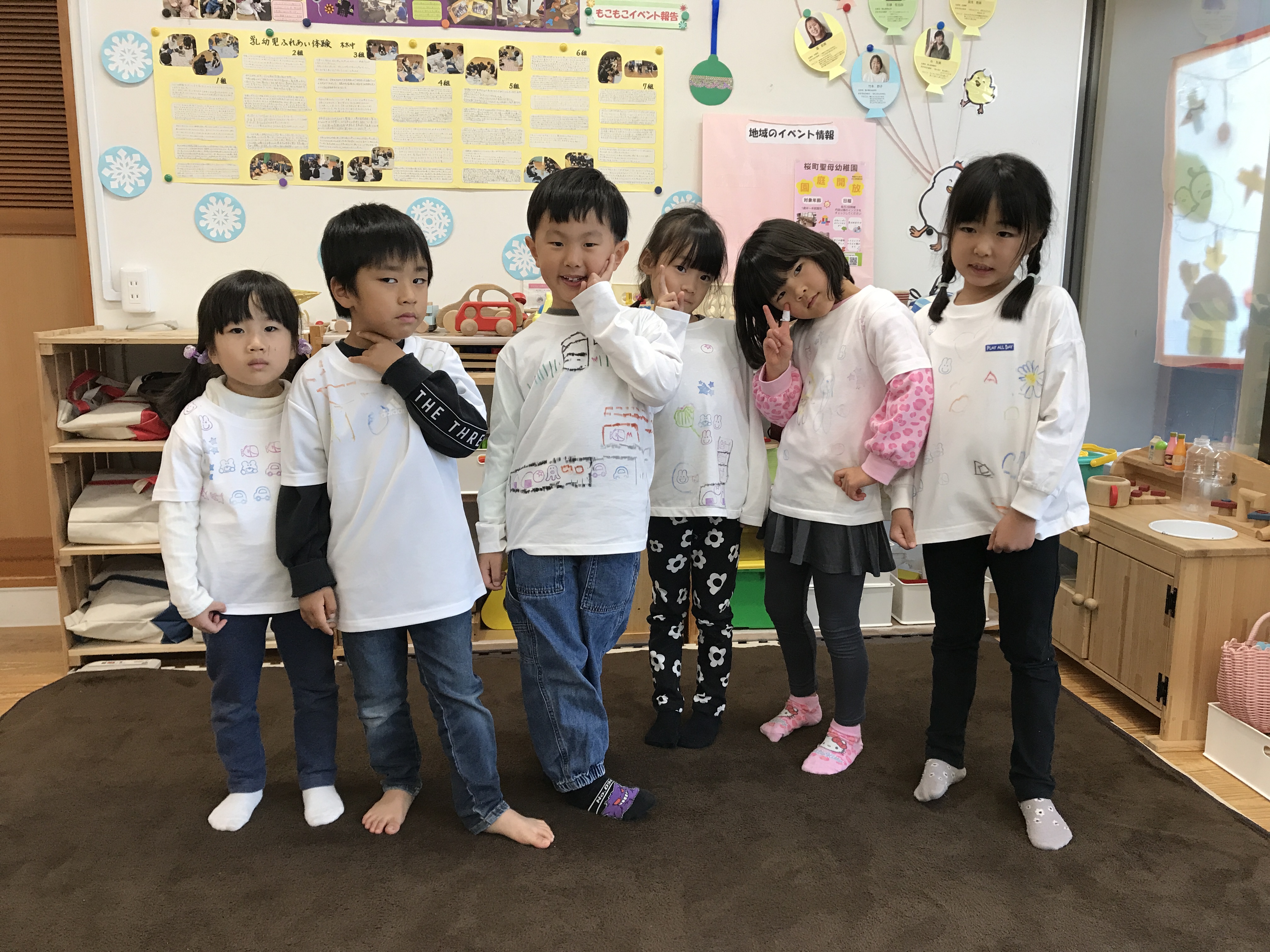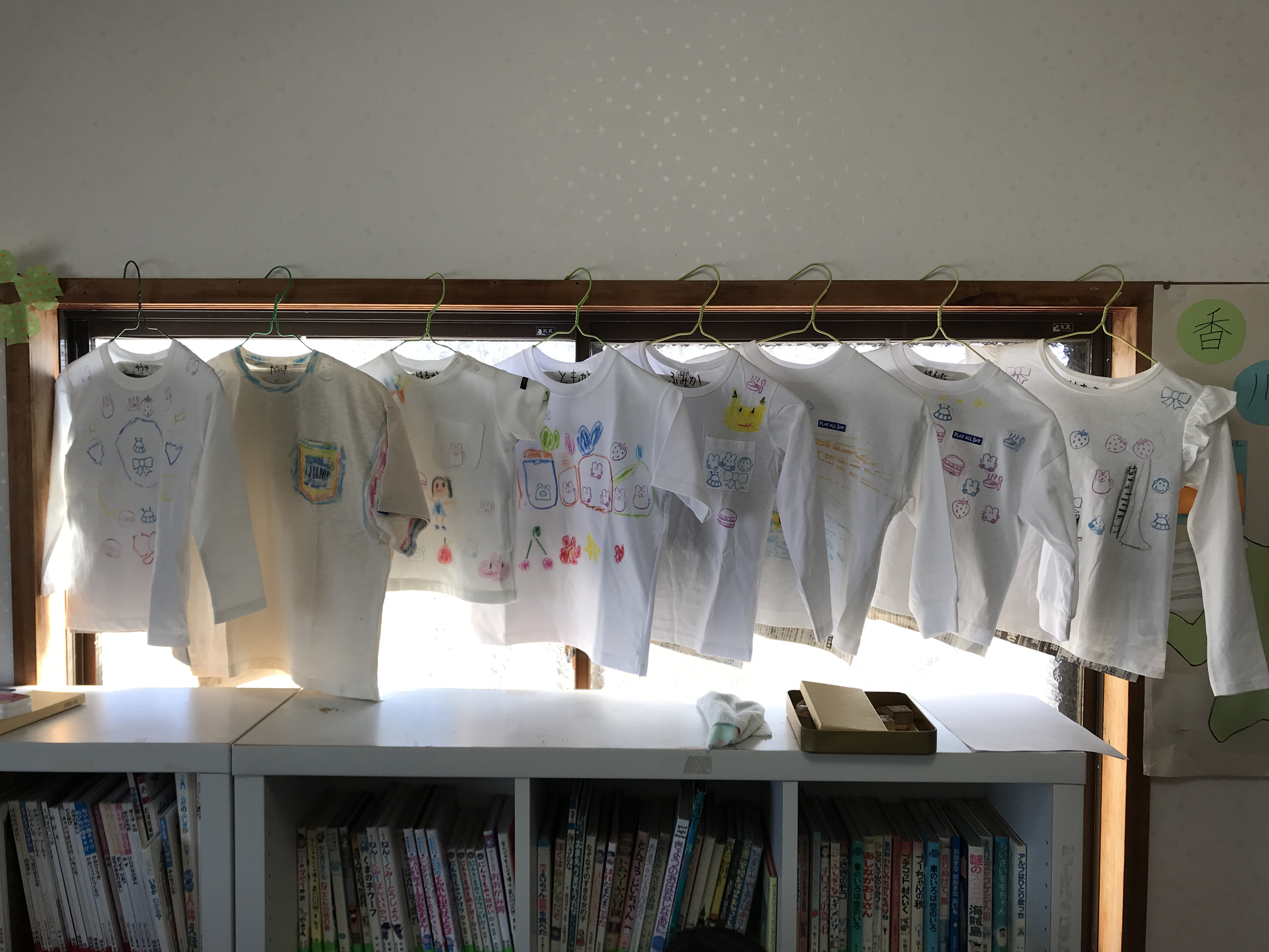 思い思いに白いTシャツをキャンバスにして、ハンコを押したり絵を描いたりを楽しんで、自分らしいTシャツに仕上げました。