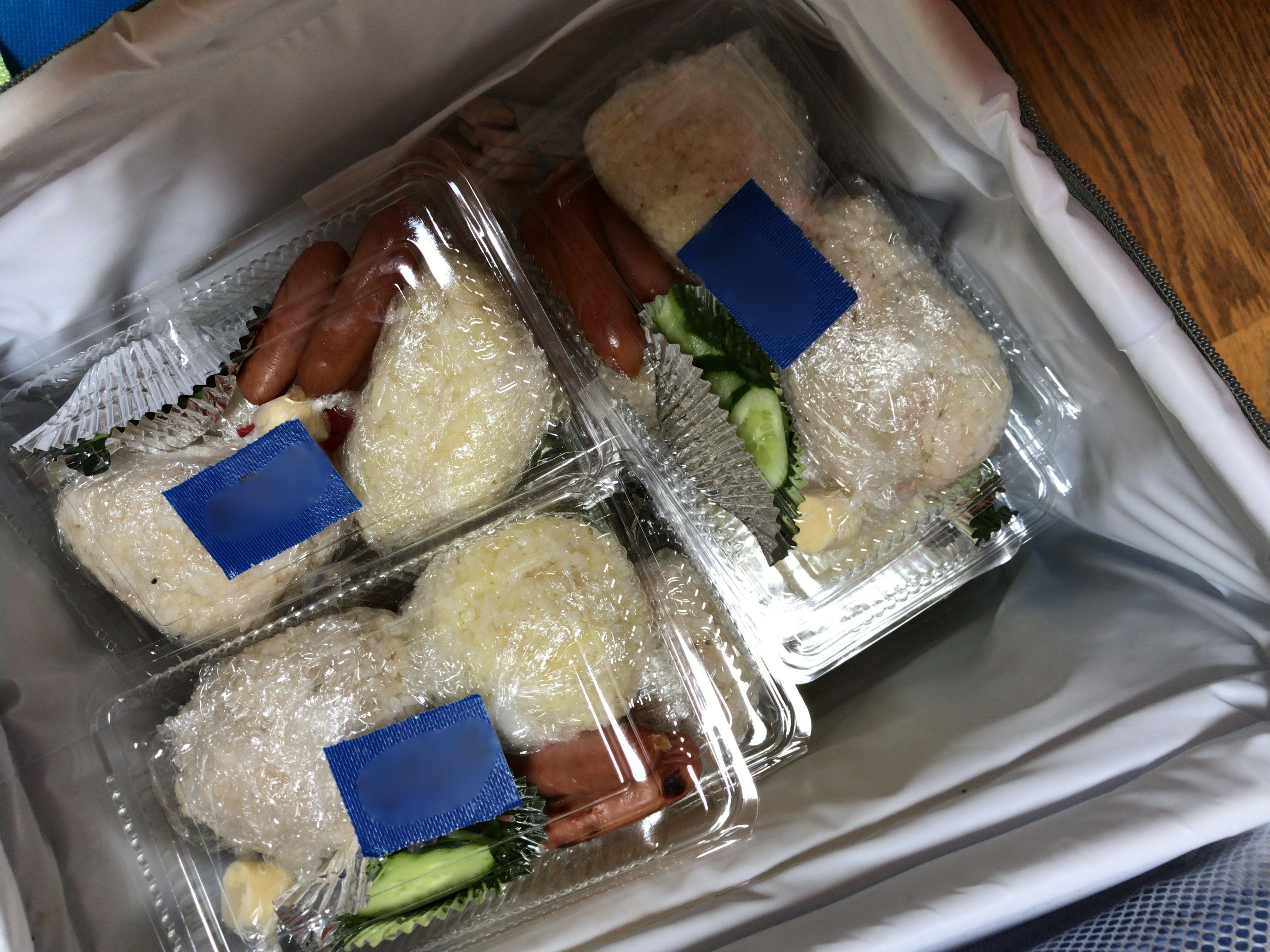 おにぎりを自分たちで握って、お弁当箱に詰めます。