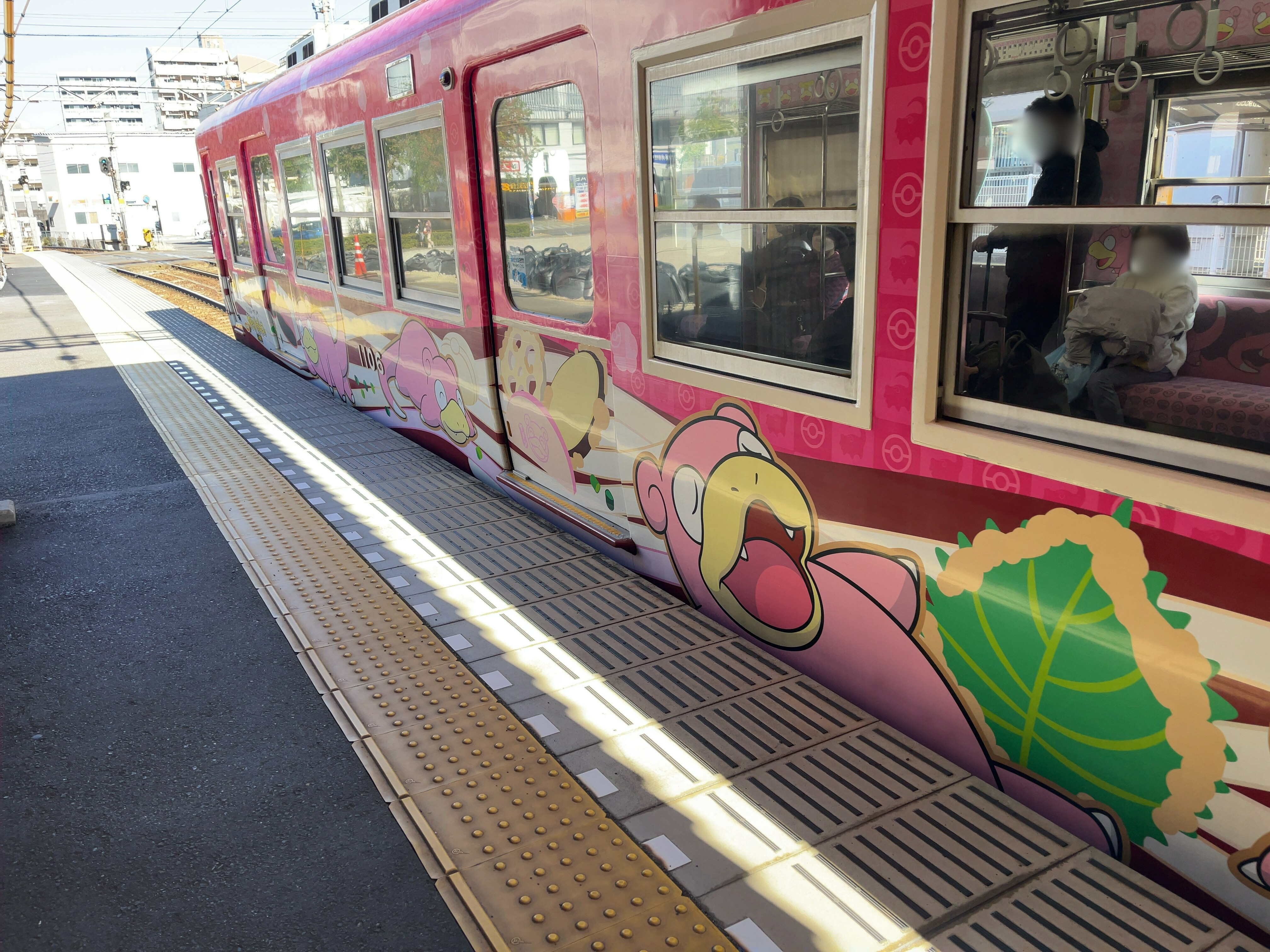 なんと行きの電車はヤドン電車!ホームに到着した電車を見て子どもたちから歓声が上がりました。