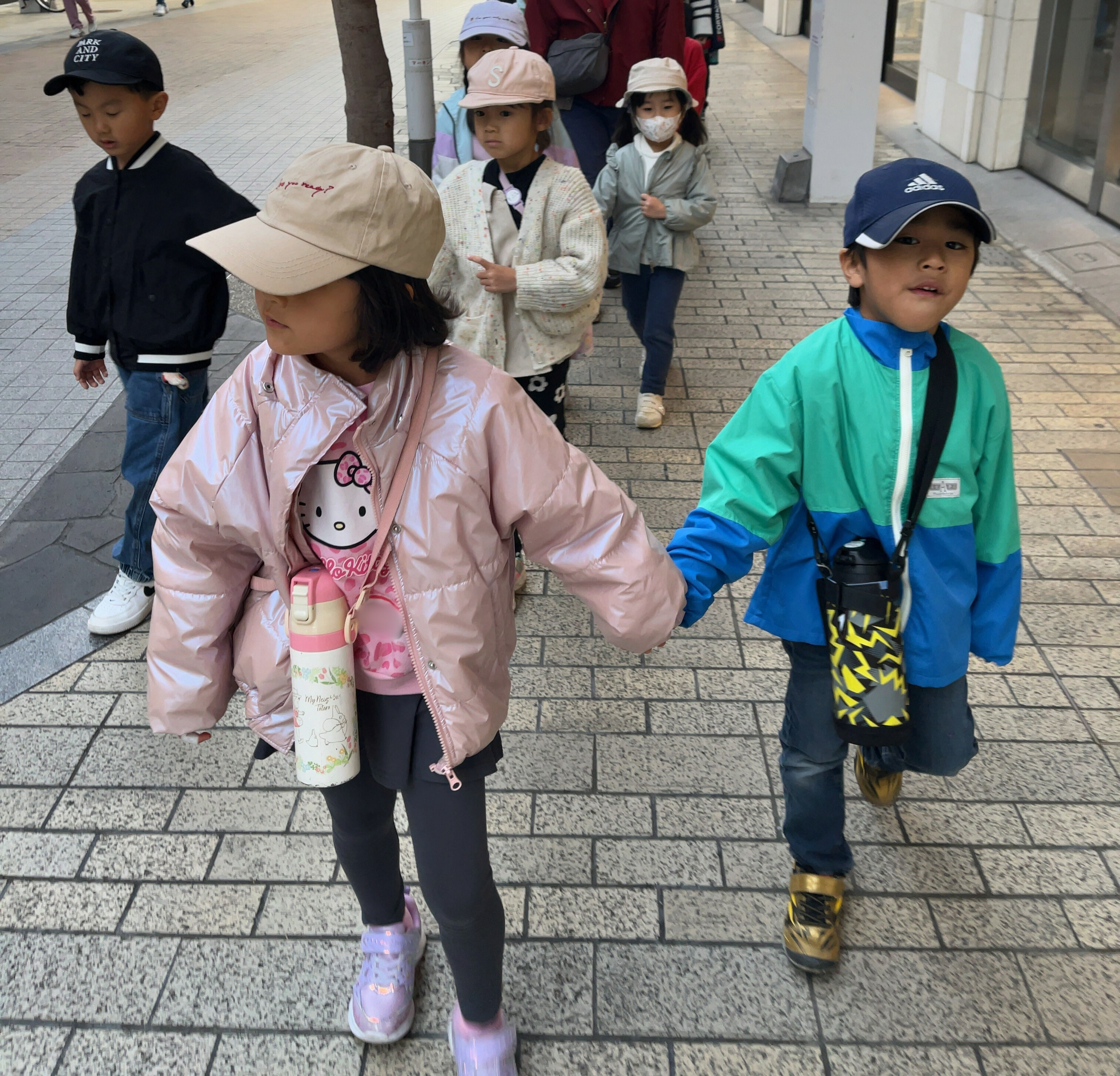 みんなで並んで駅へ向かいました。