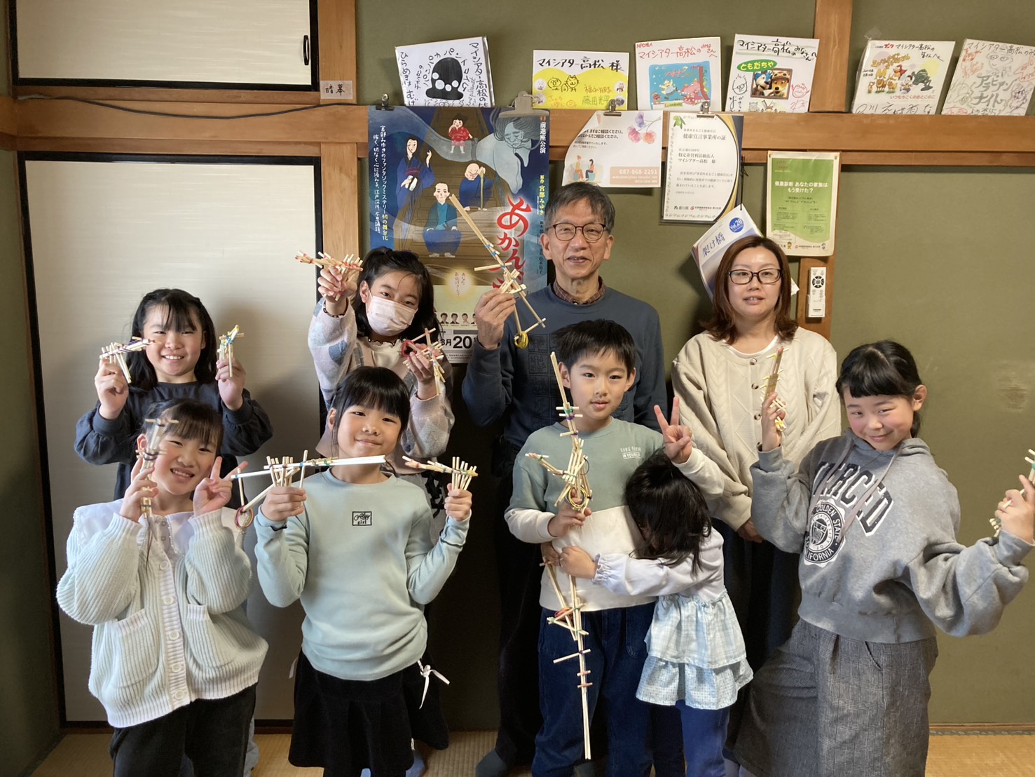 けん玉の日に来てもらっている藤井さんに割りばし鉄砲の作り方を教わりました。