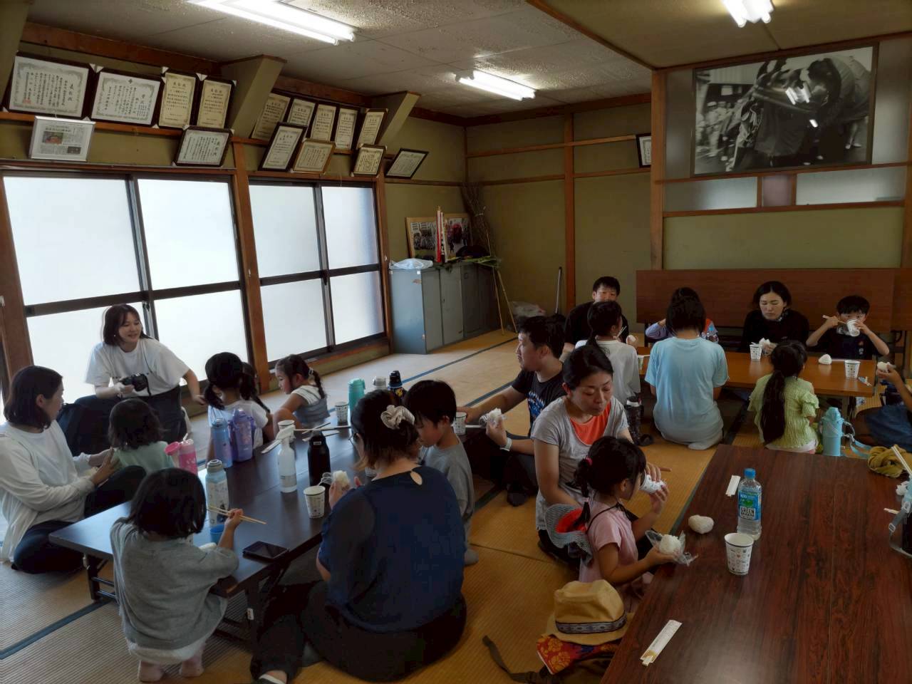 それから、お楽しみのあきたこまちのおにぎりと手作りのお噌汁をみんなで食べました。