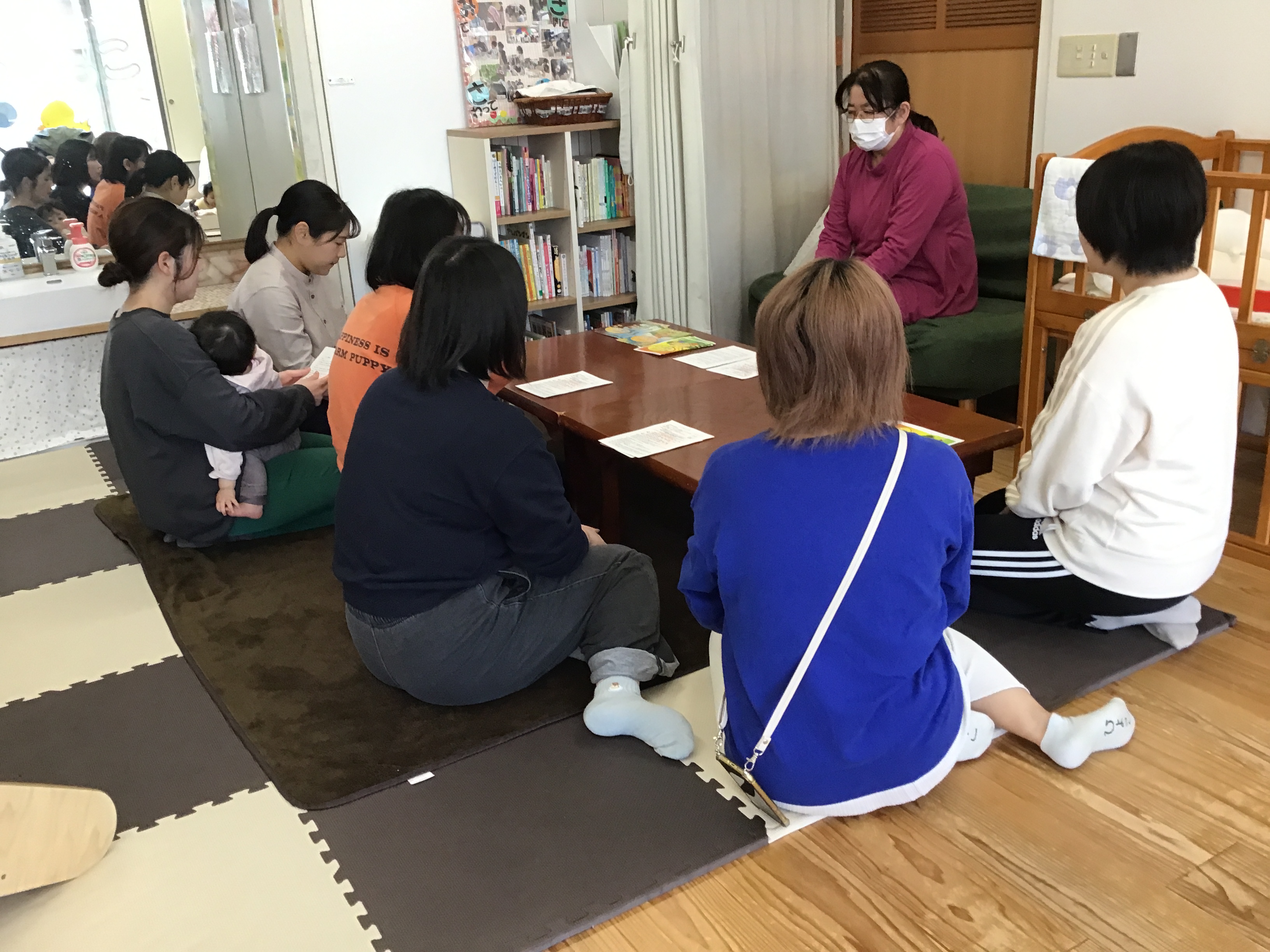 事前授業をした後で、もこもこに来てくれている親子さんにたくさんご参加いただいて、中学3年生の生徒の皆さんに赤ちゃんと直接触れ合ったり、お話を聞いたり、妊婦ジャケットや赤ちゃん人形を使ったお世話体験をしてもらいました。