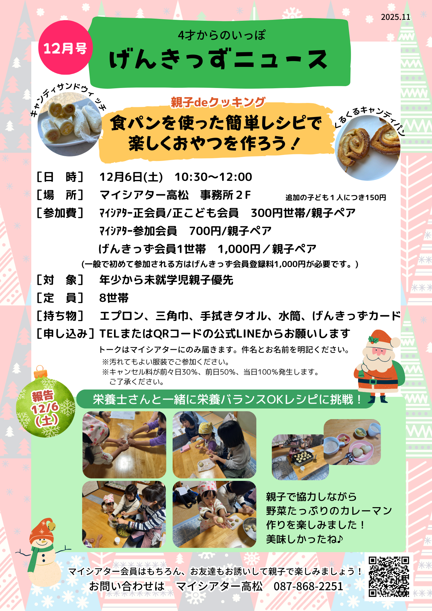 参加費:マイシアター会員・もこもこ親子会員 500円(試食付)