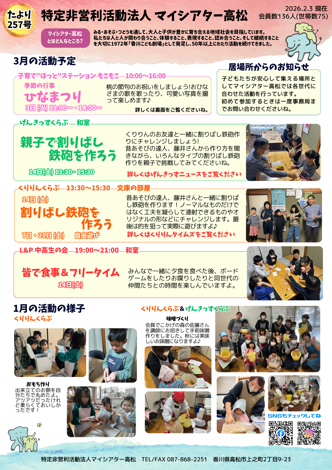今回の人形劇は共同募金助成事業として開催され、たくさんの親子にご来場いただきました。マイシアター高松が毎年開催している「子どもたちにとって舞台を楽しむきっかけとなる」アートステップ事業としても、大成功を収めることができました。