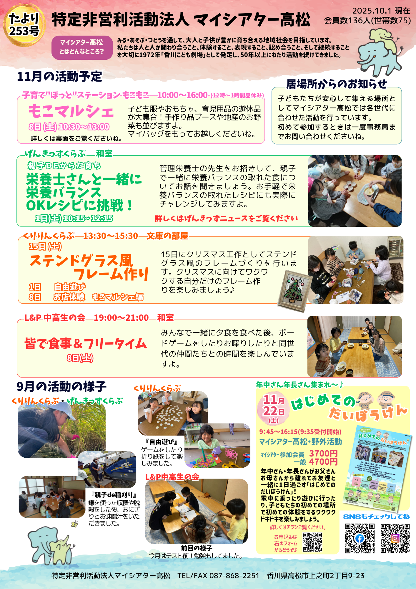 0歳からの【みる】舞台鑑賞をメインに、【あそぶ】体験活動や【つどう】居場所づくり、【はたらく】母親のスキル発揮によって、子どもたちの成長に沿って、長いスパンでの関わりを継続することで、大人も子どもも豊かに育ち合える活動をしています!